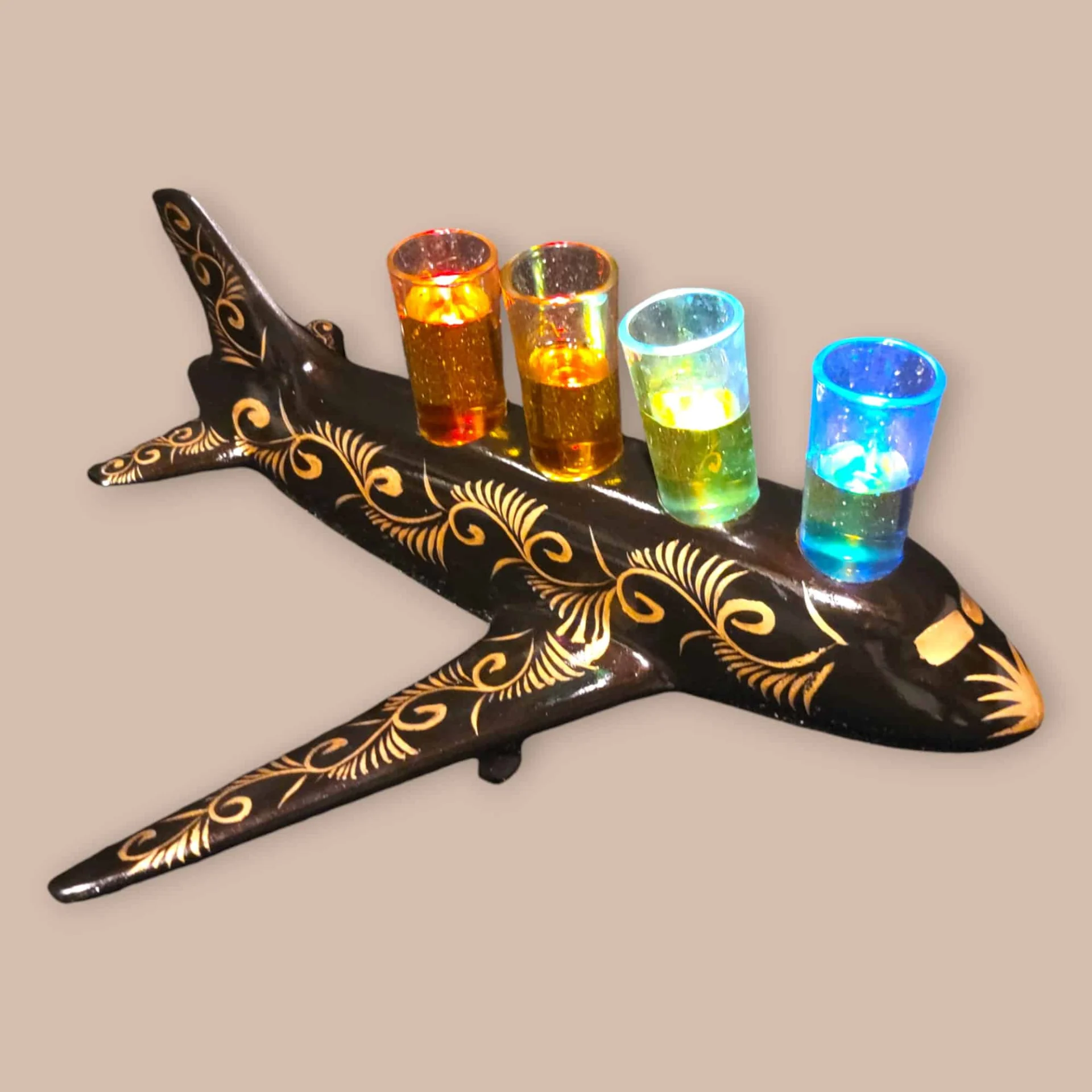 4 Shot Black Airplane Tequila Flight Tray with Lights